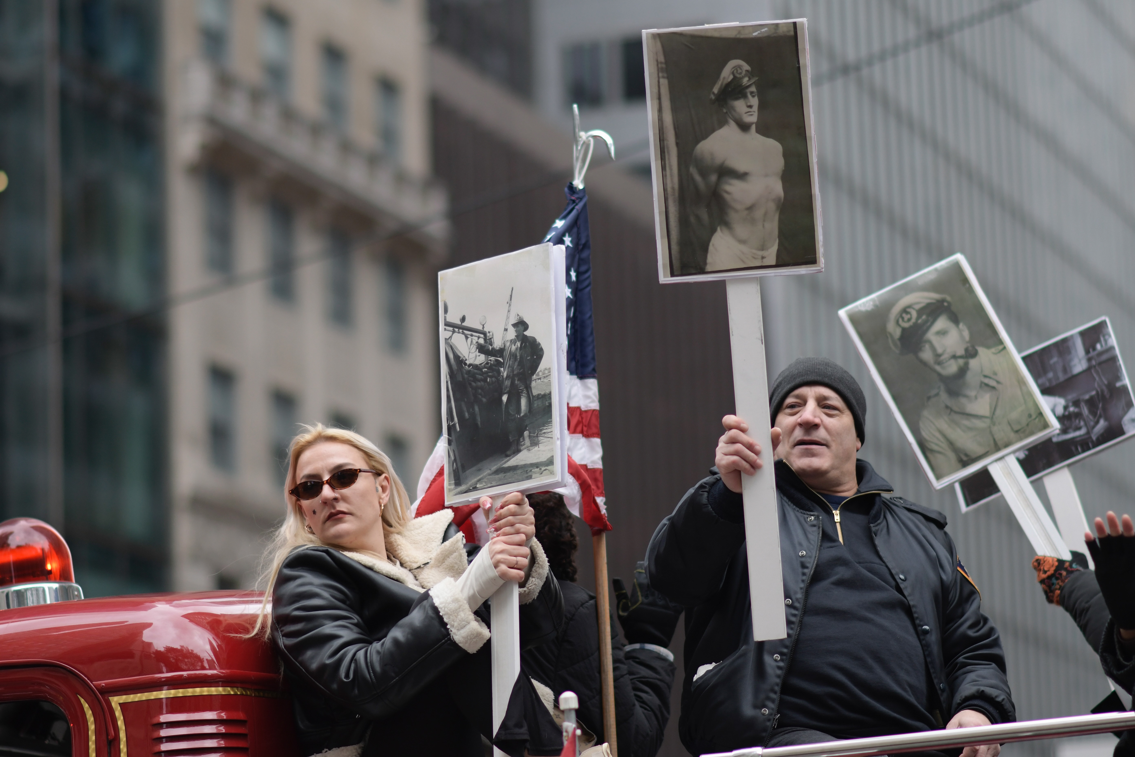 Participants hold portraits of veterans as they ride in the Veterans Day Parade in New York on Tuesday, Nov. 11, 2025. ©Chengchao Li 2025